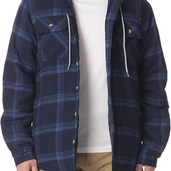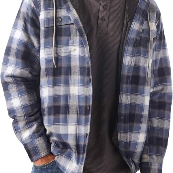 Men's Long Sleeve Quilted Lined Flannel Shirt Jacket with Hood