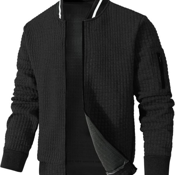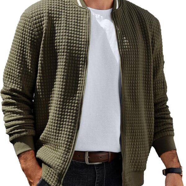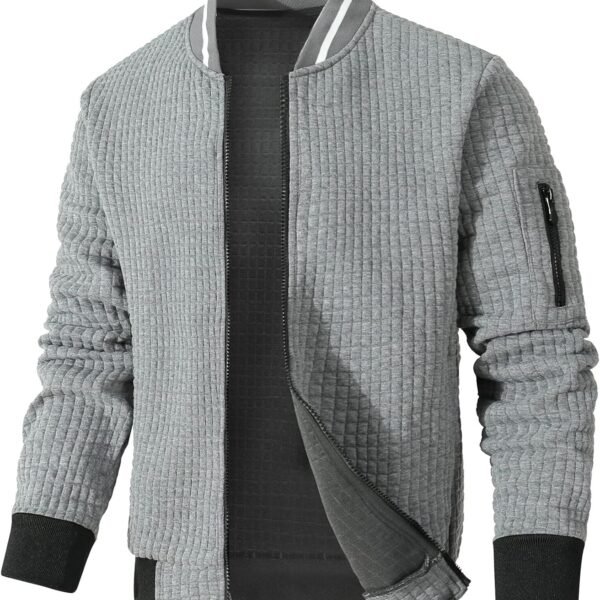 Men's Bomber Jacket Lightweight Casual Jacket Fashion Varsity Coat Waffle Zip Up Jackets