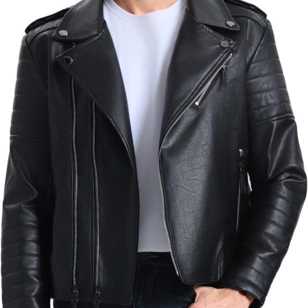 Men's Leather Jackets, Faux Bomber Jacket for Men'sMotorcycle Lapel Asymmetric Zip-Up Slim Fit Biker Coat