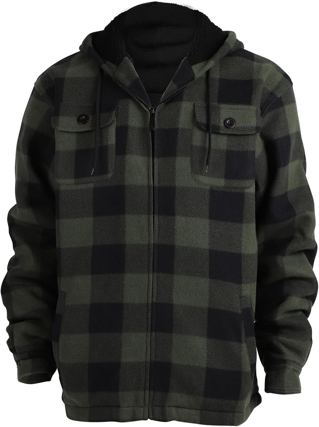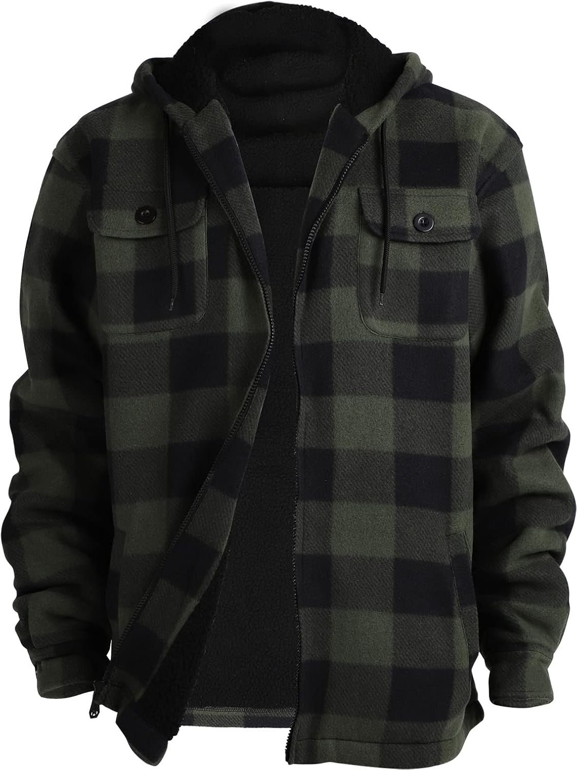Heavy Thick Flannel Plaid Jacket Fleece Lined Hoodies for Men’sZip Up Winter Warm Coat Buffalo Zipper Sweatshirt
