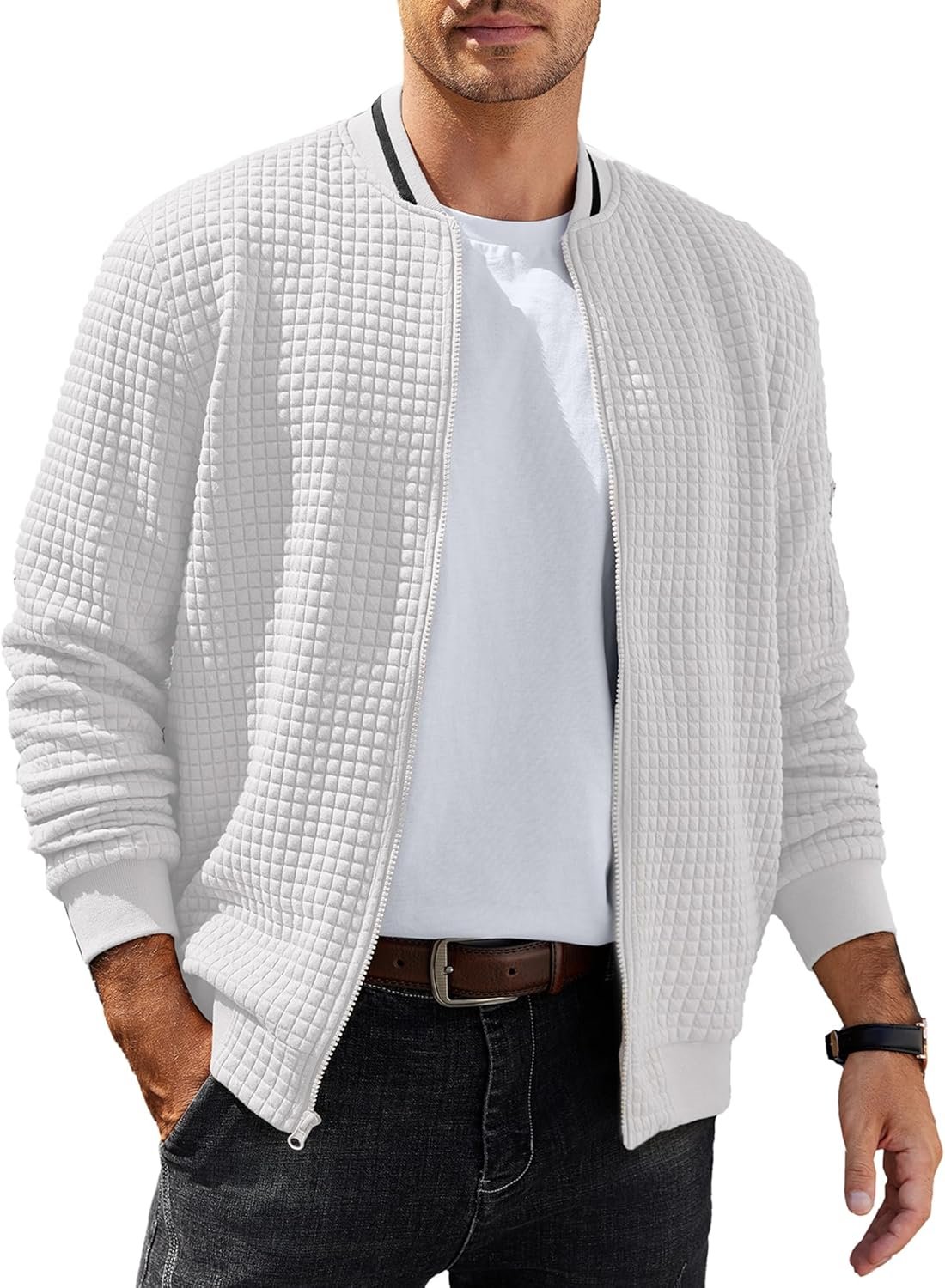 Men’s Bomber Jacket Lightweight Casual Jacket Fashion Varsity Coat Waffle Zip Up Jackets